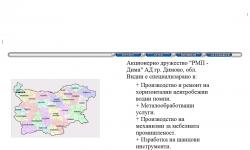 РМП – Дима АД се намира в град Димово, област Видин и е създадено през 1997 година. Компанията се занимава с производство на машиностроителни продукти, центробежни водни помпи тип "Е", "Е-М", "МТ" и "МС", възли, агрегати и други. Извършваме търговия на посочените продукти в странат...